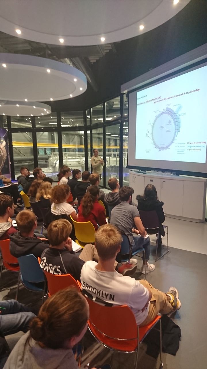 Présentation dynamique et pointu de son fonctionnement par un ancien élève de Walbourg. Puis visite d'un institut de biologie structure attenant au synchrotron. Cette aura été l'occasion pour nos élèves de terminale scientifique de découvrir in situ des technologies performantes et, pour certaines, uniques au monde.