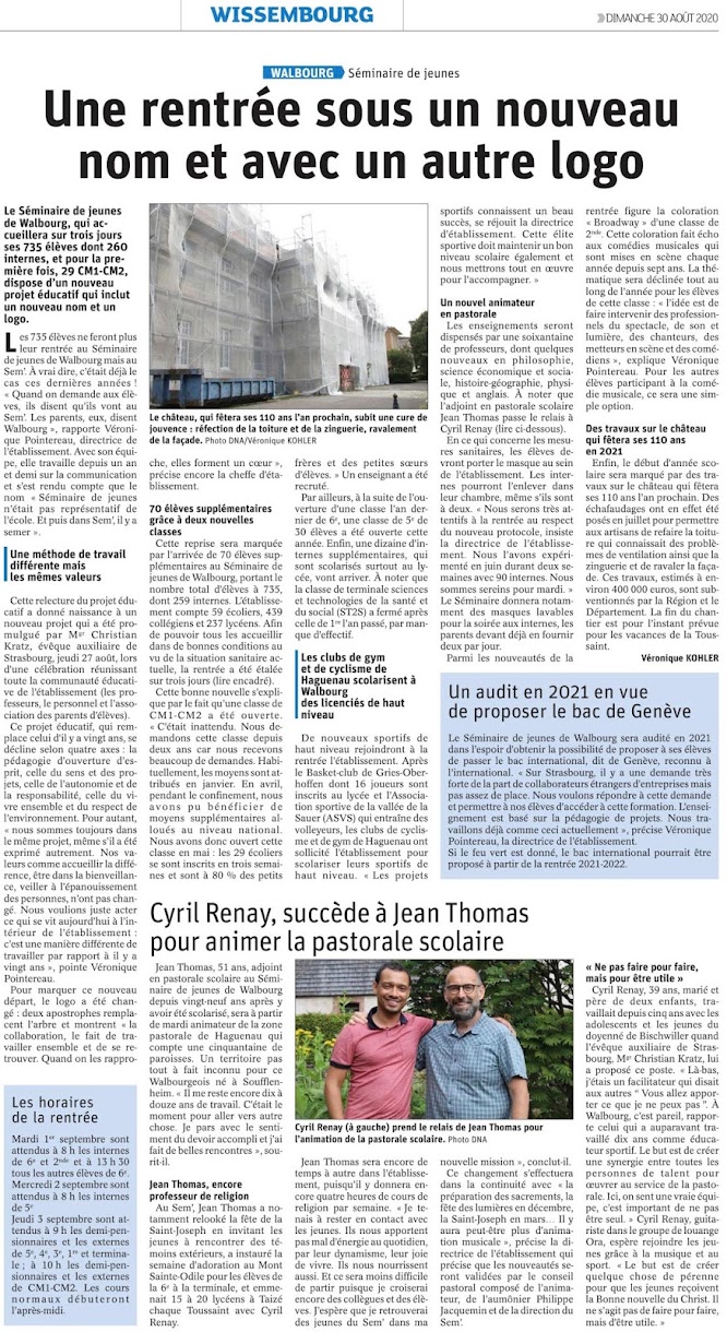 Dans les Dernières Nouvelles d'Alsace du dimanche 30 Août dernier, une page entière parlait des nouveautés du Séminaire de Jeunes. Découvrez l'article.
